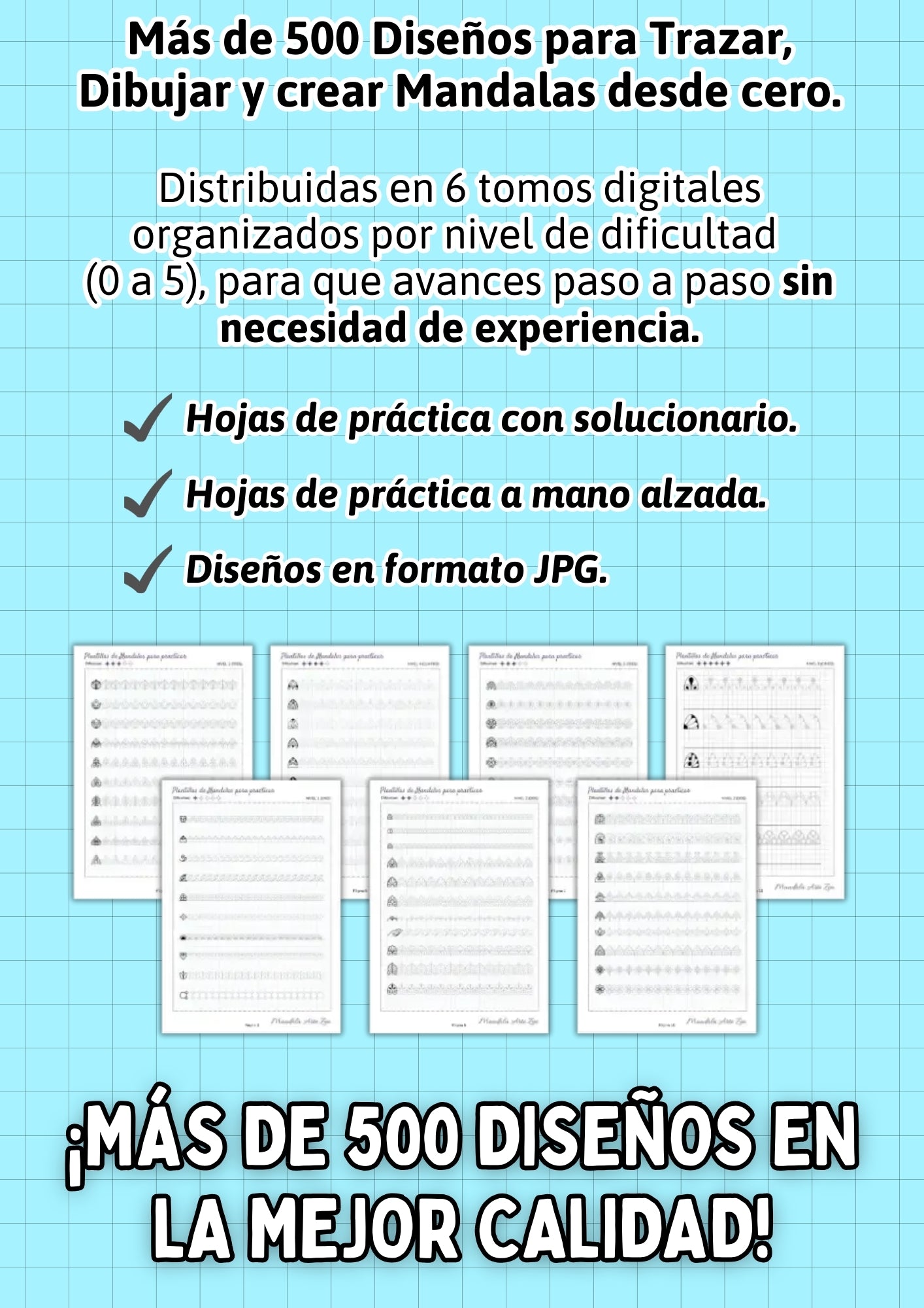 60 diseños adicionales en Hojas de Práctica de mandalas complejas